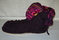 I've finished the first complete boot at last, I have to say I can't wait to get the second on done. They will be ready for my winter ice-block feet just in time I think, oh and they are so cosy too, with that nice thick sole I should be as warm as toast.